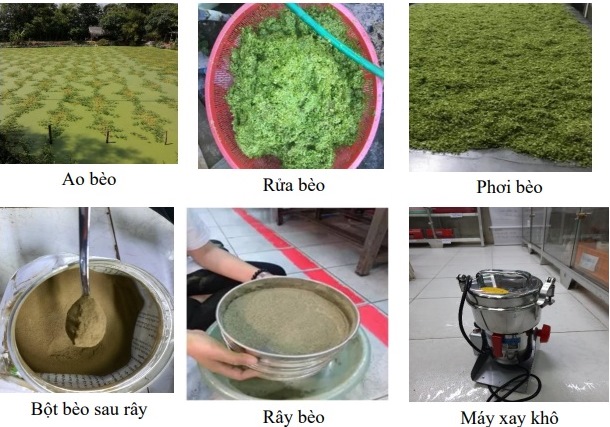 Quy trình sản xuất gồm các bước chuẩn bị bột bèo nguyên liệu; trích ly chlorophyll; cô đặc chân không; quá trình xà phòng hóa; quá trình thế nhân; thu lấy dịch trong là SCC thành phẩm.