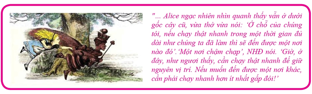 “.... ở đây bạn cần nỗ lực chạy để giữ nguyên chỗ. Nếu muốn đến được nơi khác, bạn phải chạy nhanh hơn ít nhất gấp đôi!"